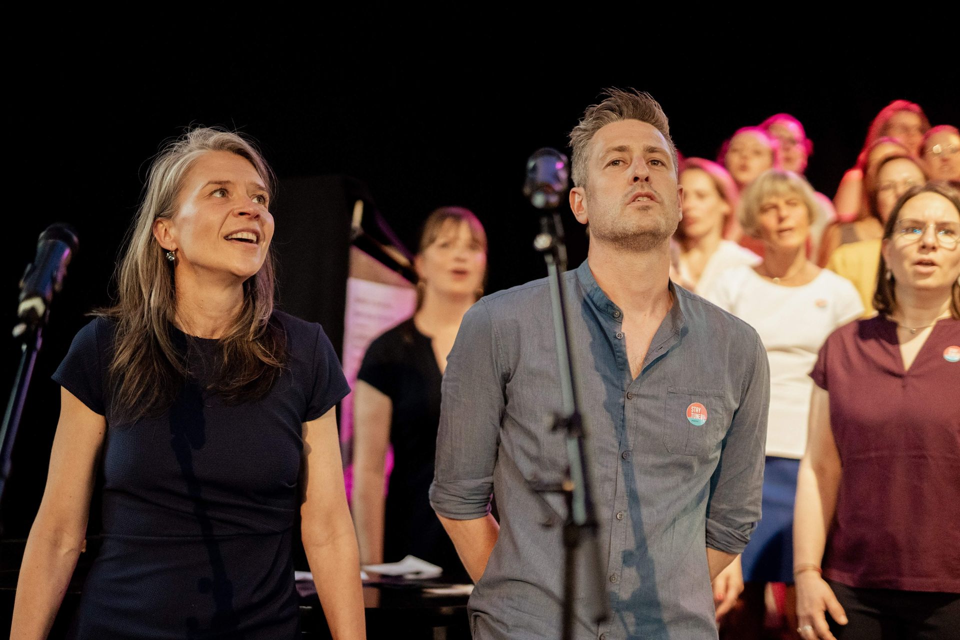 Gestartet sind wir 2021 mit den ambitionierten Sänger*innen der Originals. Im September 2024 habe ich die StayTuned!-Familie um einen weiteren Chor erweitert: die Easys, der Feierabendchor zum einfach Mitsingen. Im Januar 2025 sind die Sisters dazugekommen: Ein Frauenchor mit Sänger*innen, die mehr wollen als die Easys, aber nicht ganz so viel wie die Originals.